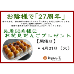 4/1(水)、4/6(月)~4/15(木)、4/22(水)、4/30(木)