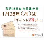 毎月26日はお風呂の日・1月26日(月)はポイント2倍デー